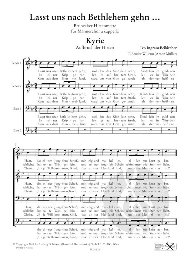 Brunecker Hirtenmette für vierstimmigen Männerchor a cappella