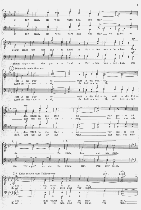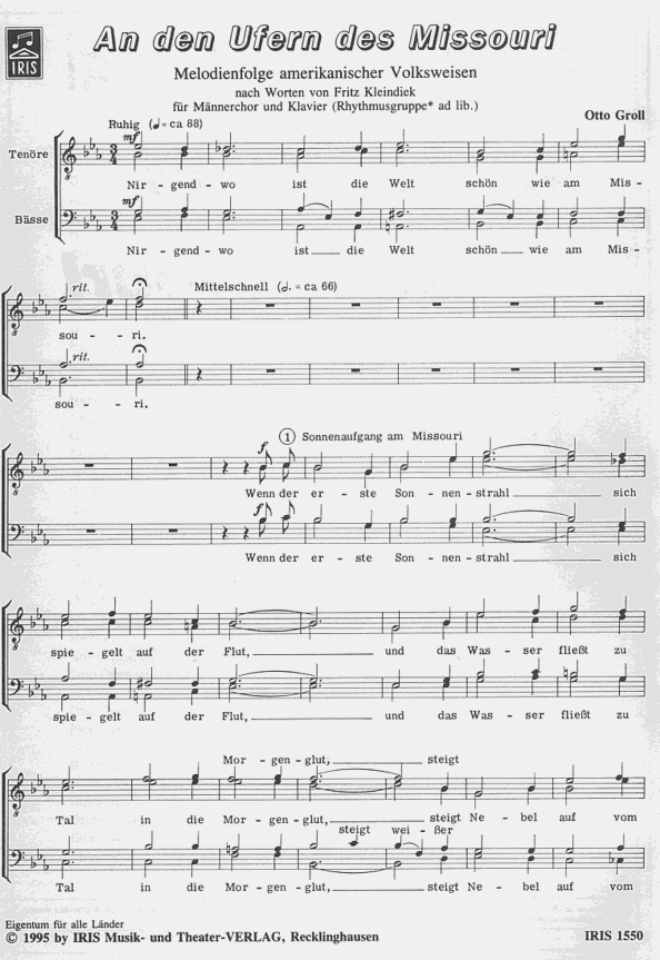 Melodienfolge amerikanischer Volksweisen mit dt. Texten für Männerchor und Klavier oder mit Akk., Gitarre, Bass, Schlagzeug