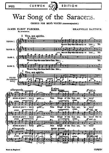 Granville Bantock's War Song Of The Saracens for TTBB Choir with Piano accompaniment.
