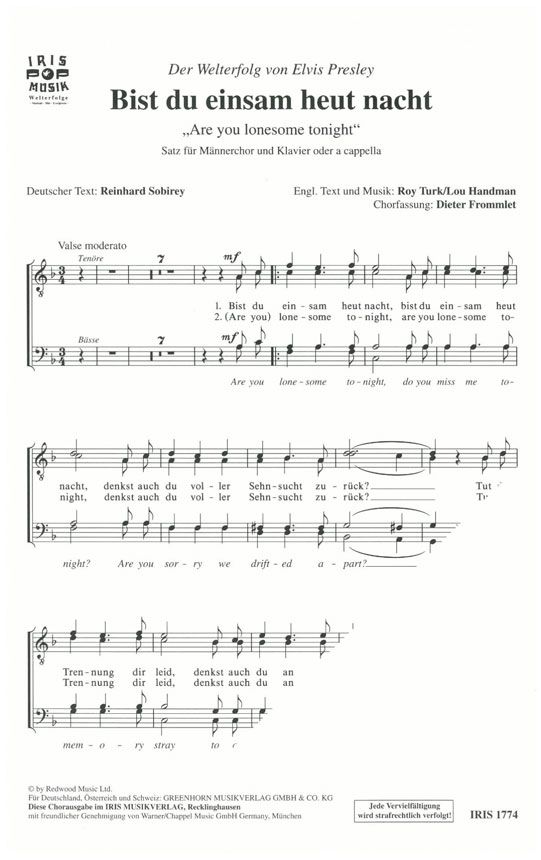 Are you lonesome tonight - Der Welterfolg von Elvis Presley a cappella oder mit Klavier (dt. und engl.Text)