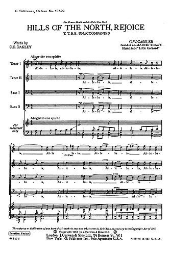 Hills Of The North, Rejoice, composed by Martin Shaw, is arranged here for unaccompanied TTBB Choir by G. W. Cassler.