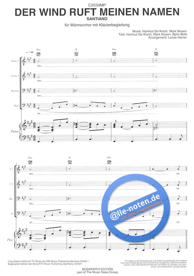 Klavier- und Singpartitur (nur bei Abnahme in Chorstärke) können einzeln bezogen werden. Bitte setzen Sie sich hierfür mit uns in Verbindung.