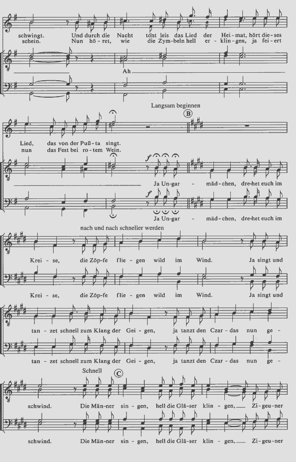 nach einer ungarischen Volksweise für Männerchor, Solo und Klavier oder zus. mit Akk., Gitarre, Bass, Schlagwerk