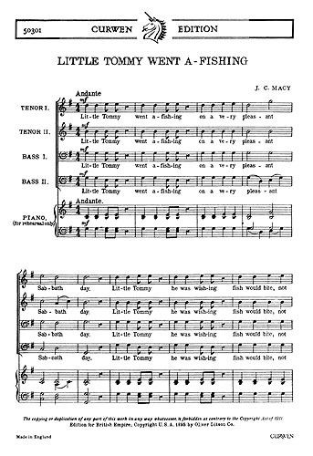Little Tommy Went A-Fishing ispossiblyMacy's best-known work today. It is presented here for TTBB male voice chorus, with a Piano reduction provided for rehearsal purposes. A version for SATB choir is available in a separate edition.