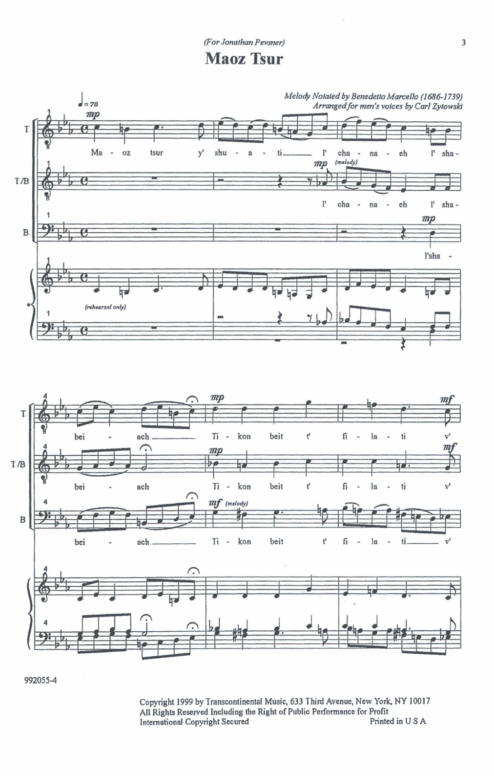 Maoz Tsur (Men's Voices) Rehearsal Piano