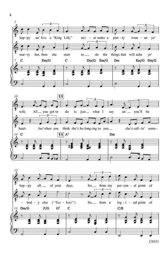 This Calypso tune from Trinidad will be a showstopper for your men. The text is hilarious with opportunities for solo voices and percussion instruments. This funny novel piece will make a nice multicultural selection and willdefinitely inspire your men to sing and entertain the audience! Available separately: TTB, tenor solo, opt. percussion; StudioTrax CD.