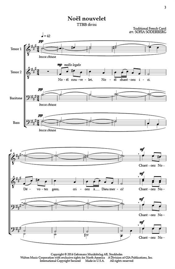 A rhythmic and dynamic arrangement of the traditional French carol, Noël nouvelet by Swedish composer/conductor Sofia Soderberg. Contrasts of homophony and polyphony with the melody bouncing between the voices, this challening and singable work will be an exciting addition to your winter concert.