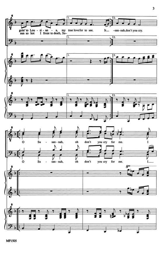 Commissioned for the Kentucky Music Educator's Association TTBB All-State Chorus, this lively arrangement of a beloved folk song also features piano, four-hand accompaniment. O Susannah!, with its wonderfully fresh glee club sound, clever vocal effects, and unexpected tempo changes, is guaranteed to bring the house down! For high school through adult male chorus.