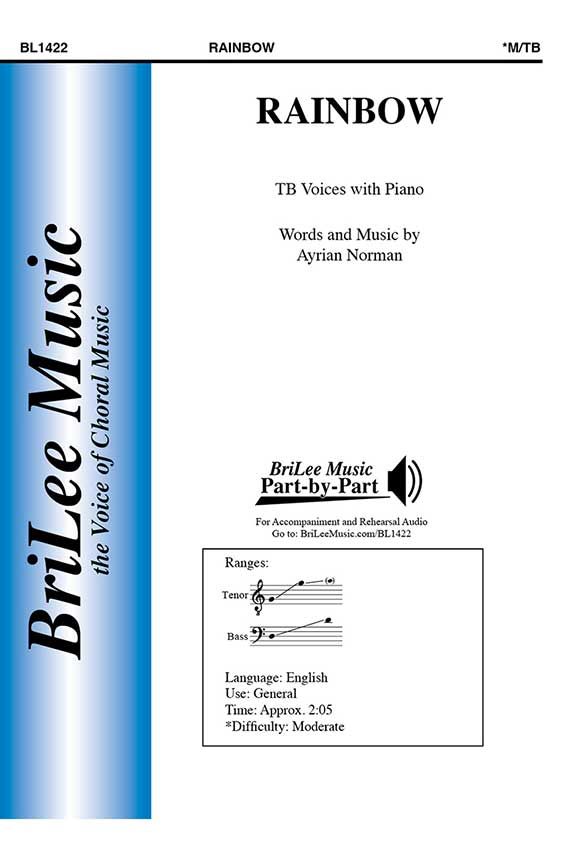 Rainbow von Ayrian Norman zelebriert die Hoffnung, die nach dem Sturm aufleuchtet. Ein lebendiger, fließender Klavierpart treibt die Energie unter einer unverwechselbaren Melodie voran, die sich durch kontrastreiche Stimmungen bewegt: nachdenklich, temperamentvoll und erhebend. Dieses leicht zugängliche und doch ausdrucksstarke Stück bietet Chören in der Entwicklungsphase eine bunte musikalische Reise voller Leben und Bewegung. Auch erhältlich für SA Voices (BL1421).