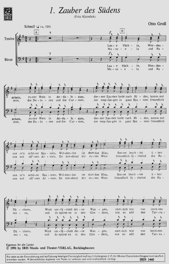- Besetzung Männerchor (4-stimmig) und Klavier