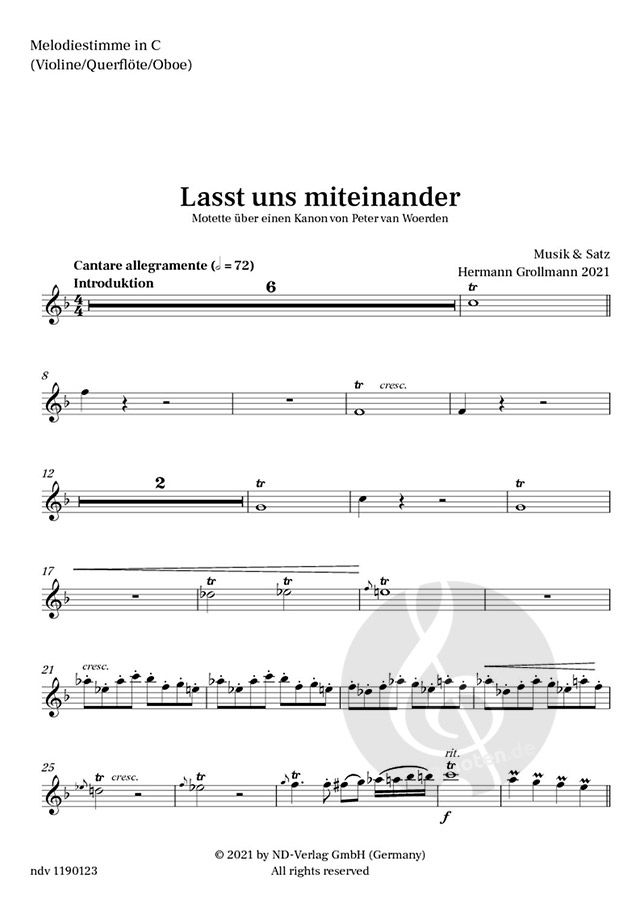 Die Combo-Ausgabe wurde passend zum Chor-Satz 'Lasst uns miteinander (NDV 1190123)' eingerichtet und kann mit vielfältigen Besetzungen kombiniert werden.