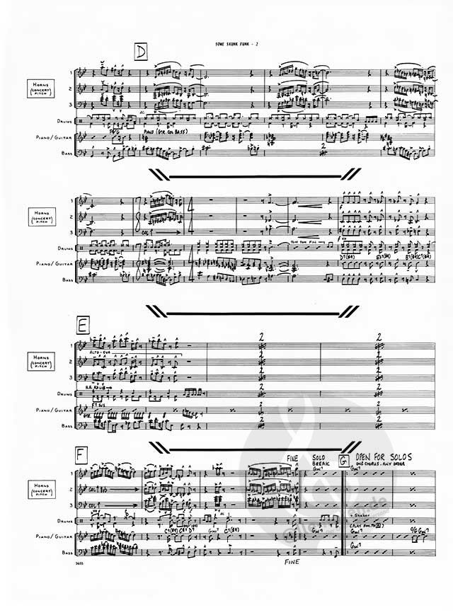 As recorded on The Brecker Brothers album (Arista 4037) of 1975, this adventurous fusion tune features highly-charged syncopations, intricate figures and open solo space for any player(s). Use of the optional percussion part will enhance any performance, and rhythm section parts are partially notated with chords cued.