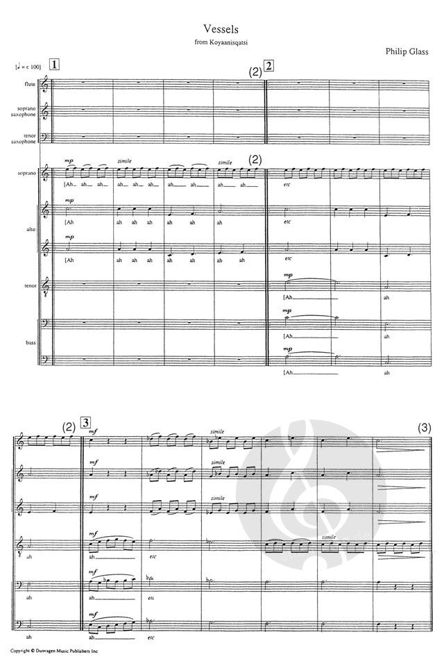 - Gemischter Chor (SAATTB), Querflöte, Sopransaxophon und Tenorsaxophon