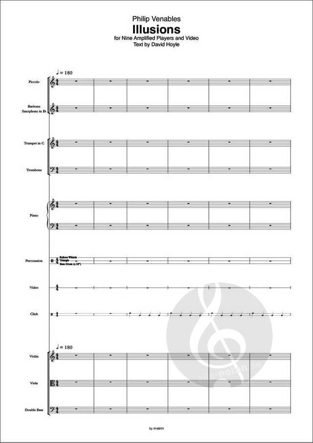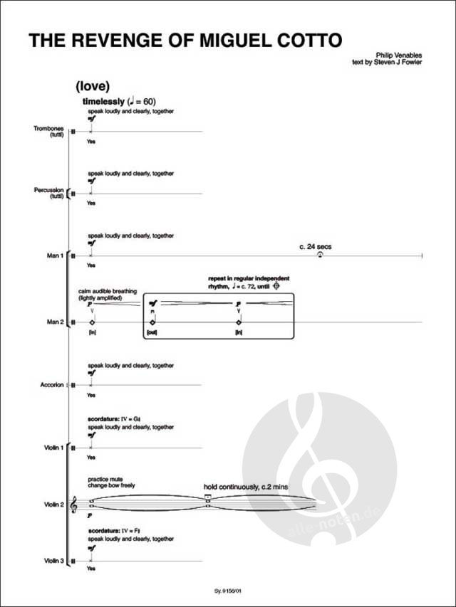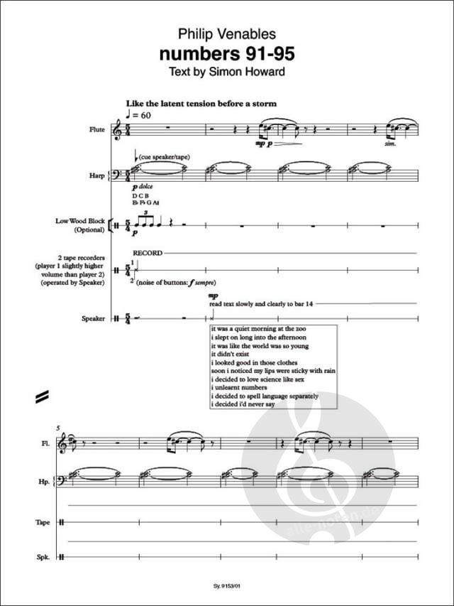 für Sprecher und zwei Tonbandgeräte, Flöte, Harfe und optionalen Holzblock