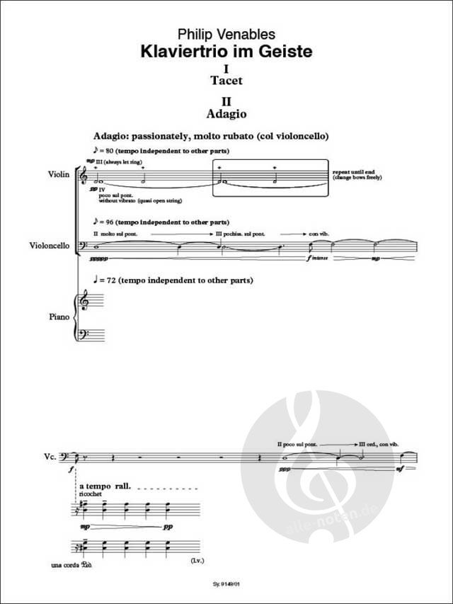 - Querflöte, Violine, Klarinette in A, Cello und Klavier