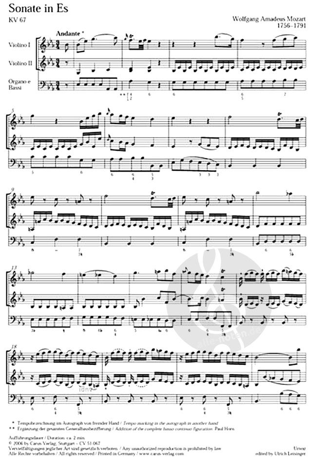 gemischter Chor (SATB) mit Flöte, 3 Violinen und Violoncello; Kontrabass ad lib.