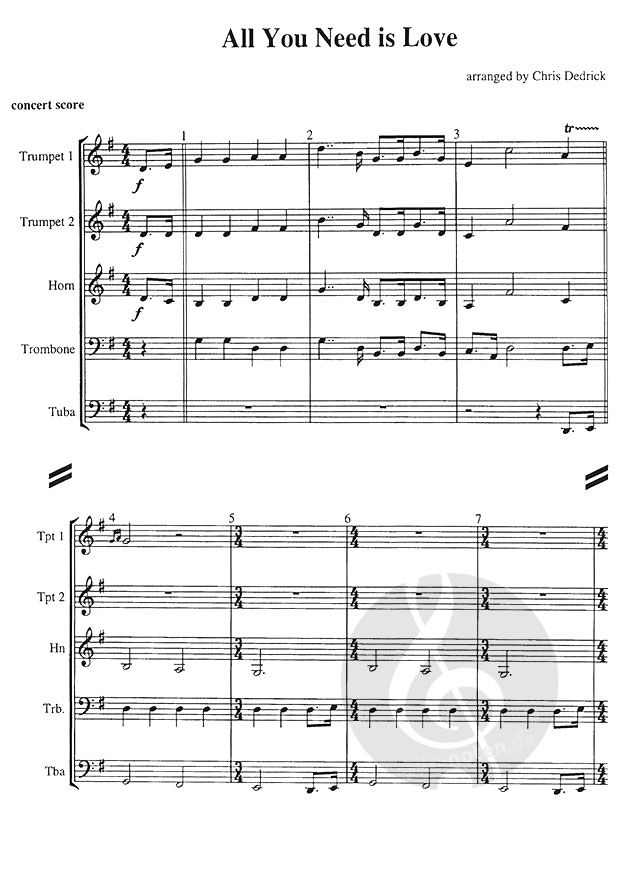 Full Score. This brass quintet collection matches The Canadian Brass' album All You Need Is Love, released by RCA/BMG. Includes masterful arrangements by Chris Dedrick of 13 Lennon & McCartney classic...
