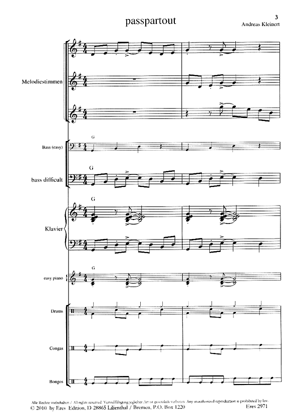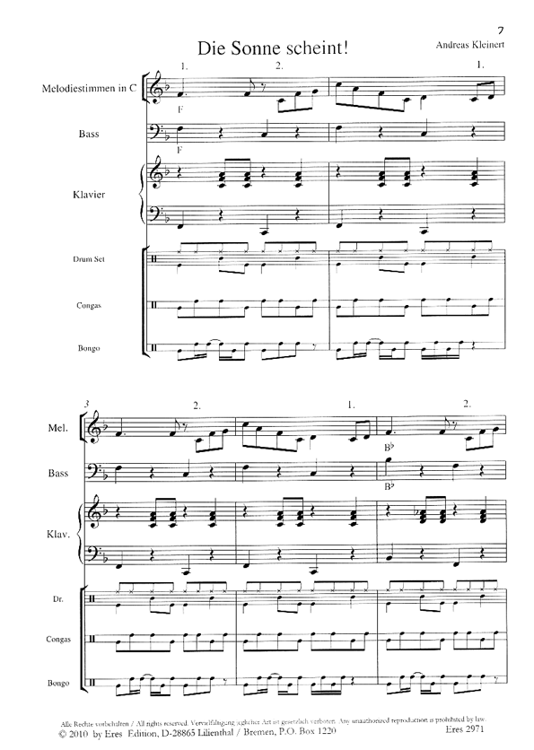 Melodiestimmen, Bass (easy), Bass (difficult), Klavier, Klavier (easy), Drums, Congas, Bongos