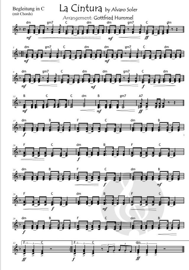 Begleitung in C (Violin-Schlüssel) mit Chords