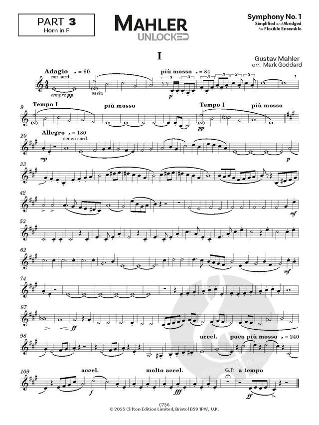 Gustav Mahlers 1. Sinfonie in einer Bearbeitung von Mark Goddard für ein flexibles Ensemble. Dieses Arrangement bewahrt die Essenz des großen Werks, ist aber dennoch leicht zu spielen und prägnant. Ursprünglich von Spartan Press in drei separaten Paketen veröffentlicht, die miteinander kombiniert wurden (Holzbläser, Blechbläser, Streicher), umfasst diese neue Ausgabe alle drei Versionen in einem einzigen Paket.