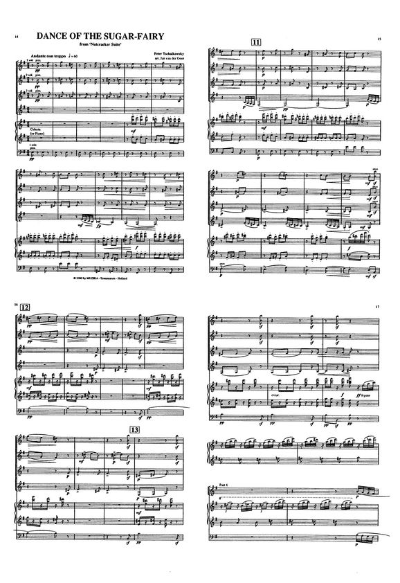 Die Reihe ist arrangiert für Klavier und fünf beliebige Instrumente. Die 5. Stimme (Bass-Stimme) folgt den linken Hand auf dem Klavier und ist ad libitum.