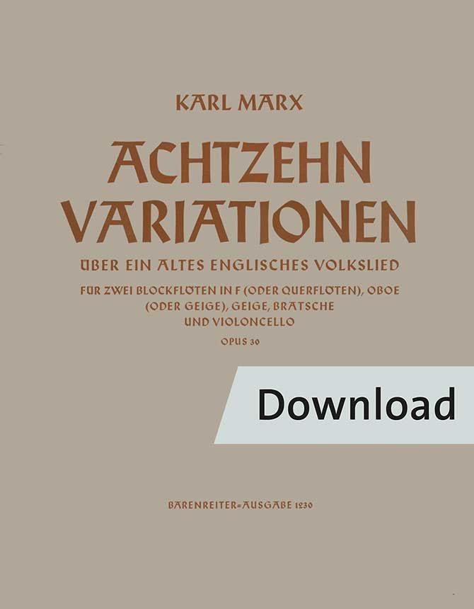 18 Variationen über ein englisches Volkslied (O the cuckoo is a pretty bird) für zwei Blockflöten in F (oder Querflöten), Oboe (oder Geige), Geige, Bratsche und Violoncello op. 30
