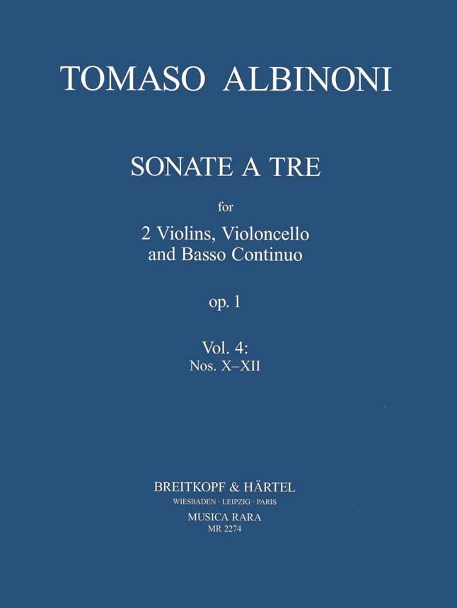 Nach den drei so überaus erfolgreichen Heften war es nur ein relativ kleiner Schritt bis zum vierten Heft und damit zur Edition der letzten drei Stücke. Albinonis Triosonaten op. 1 liegen damit komplett vor. Schon zu Lebzeiten des Komponisten waren die Trios weit verbreitet, wie verschiedene Drucke und letztlich auch Bachs Verarbeitung in den Cembalofugen BWV 946, 950 und 951 zeigen. Die Quellenlage lässt für eine fundierte Ausgabe nichts zu wünschen übrig: die Stimmbücher des Erstdrucks von 1694 sind eine sichere Grundlage, auf deren Basis Martin Lutz im Vergleich mit anderen überlieferten Quellen einen zuverlässigen Notentext erarbeitet hat.