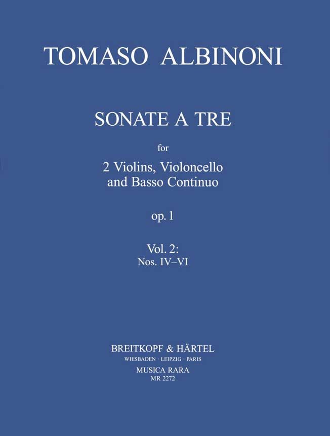 Albinonis op. 1: die editorische Fortsetzung Der Auftakt (Heft 1 mit den Sonaten Nr. 1-3, MR 2271) war so überaus erfolgreich, dass Martin Lutz mit Freude ein zweites Heft mit Albinoni-Triosonaten nachlegt. Anspruchsvoll ist die Übertragung des Stimmbuch-Erstdrucks (Venedig 1694) in moderne Notation auf jedem Fall, denn der bewegliche Typendruck erlaubte lediglich Einzelnoten und keine Balkungen, wie sie zeitgleich im Kupferstichverfahren für die Instrumentalmusik schon typisch geworden waren. Die sachkundige Hand des Herausgebers ist hier also - nicht nur für die Continuo-Aussetzung - besonders gefragt. Durch seine CD-Einspielung als Cembalist des Ensembles 'Parnassi musici' hat Lutz bereits vor einiger Zeit praktisch unter Beweis gestellt, wie packend und hochwirksam Albinonis Debütwerk klingen kann.