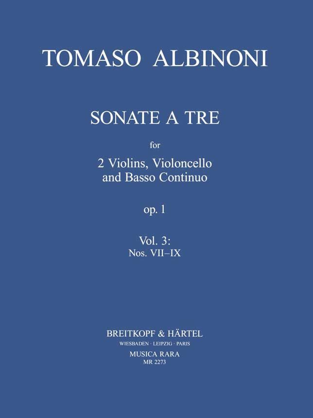 Albinonis Triosonaten op. 1 waren schon zu ihrer Entstehungszeit ausserordentlich beliebt, wie die zahlreichen, nicht immer legalen Nachdrucke zeigen. Es verwundert also nicht, dass die 2004 begonnene Neuausgabe erfreulich große Resonanz findet. Auch das dritte Heft mit den Sonaten VII, VIII und IX wird auf reges Interesse stossen. Wie zuvor legt Herausgeber Martin Lutz bei der Übertragung der Stimmenbücher den Erstdruck zugrunde, der 1694 in Venedig erfolgte ?û dies nun sogar basiert auf einem eingehenden Vergleich mit den anderen überlieferten Quellen. Der Notentext ist so noch zuverlässiger legitimiert.