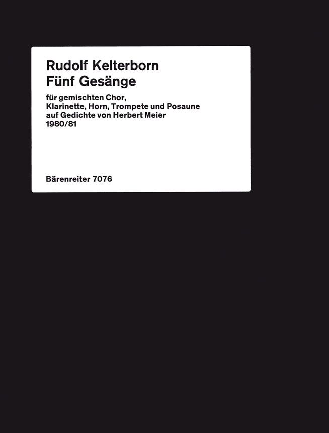Gemischter Chor-SATB, Klarinette in b, Horn, Trompete, Posaune - Partitur. Die '5 Gesänge' können auch in Verbindung mit 'Madrigal' (BA 7464) aufgeführt werden