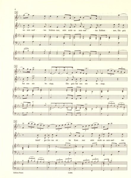 - Soli (STTBB), gemischter Chor (SATB) und Orchester