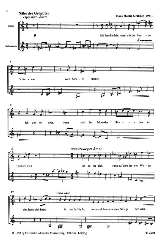 Für Sopran, Klarinette in Bb und OrgelInhalt:1.á An den Schlafá (Christian Felix Weisse)á (3'38 min)2.á Der schnelle Tag ist hiná (Andreas Gryphius)á (4'30 min)3. áDer Tag mit seinem Lichteá (Paul Ger...