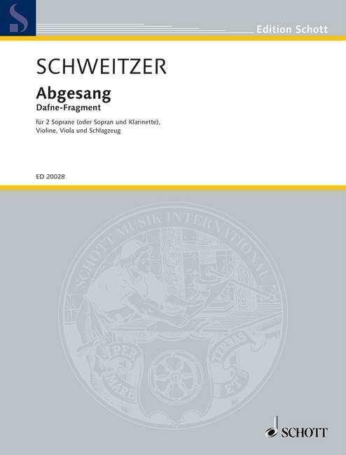 Nach der erfolgreichen Uraufführung fertigte Schweitzer von der vorletzten, zentralen Szene seiner Kammeroper eine berückende Version für den Konzertsaal an. Nach Dafnes tödlicher Verwandlung in einen Lorbeerbaum singen zwei Soprane, die zuvor als Dafne und Venus zu hören waren, einen traurig-elegischen Abgesang, begleitet von Violine, Viola und Schlagzeug. Schweitzer hat von 'Abgesang' auch eine Fassung für Sopran und Klarinette geschrieben, die noch stärker wirkt: Das Blasinstrument verkörpert gleichsam die verstummte, hölzerne Dafne.