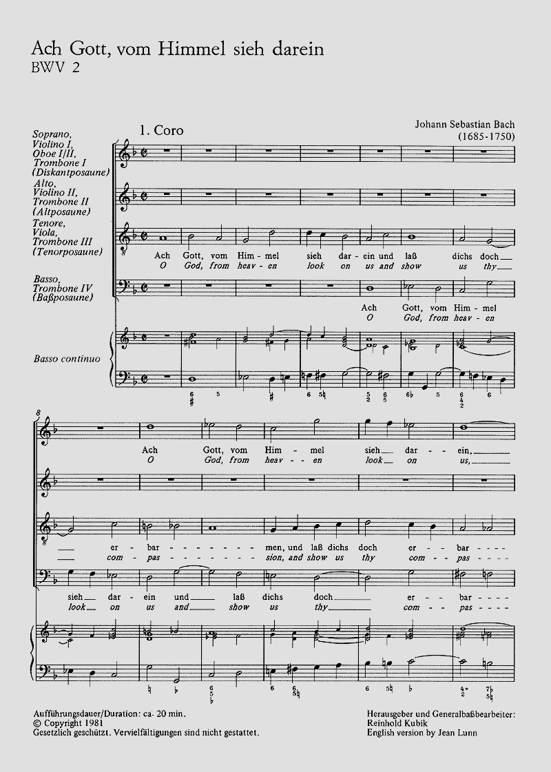 - Besetzung Soli, Gemischter Chor (SATB), 2 Oboen, Violine, Streicher und Orgel