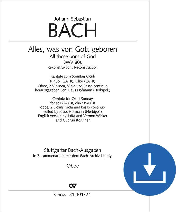 Von der Oculi-Kantate Alles, was von Gott geboren BWV 80a ist heute nur der Text erhalten. Aus den beiden späteren Fassungen ist die frühe Fassung der Kantate jedoch gut abzuleiten. Diese Rekonstruktion des renommierten Bach-Forschers Klaus Hofmann stellt eine willkommene Ergänzung zum insgesamt sehr kleinen Bestand an Bach-Kantaten zu den Passionssonntagen dar.