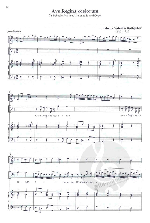 - Besetzung Gesang (tief), 2 Violinen, Viola, Cello und Orgel