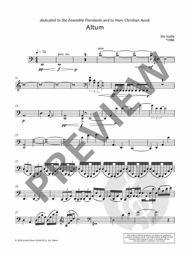 Ich habe das Stück auf meiner Heimatinsel Kihnu komponitert und dem Ensemble Floridante gewidmet. Altum – lateinisch für "Tiefe, Unermesslichkeit, Höhe, das Tiefgründige" – hat mehrere Bedeutungen, die sich jeweils auf ihre eigene Weise entfalten. Es kann das Unerreichbare sein, der Raum jenseits des Sichtbaren, oder das Gewicht von etwas Unbekanntem. Es kann Steigen oder Sinken, Ausdehnung oder Stille, die Entfernung, die trennt, oder die Unermesslichkeit, die verbindet, bedeuten. Was tief ist, ist nicht immer unten; was hoch ist, ist nicht immer oben. Altum ist kein fester Ort, sondern eine Bewegung, ein Zustand des Seins, der sich mit der Perspektive verschiebt. - Elis Hallik