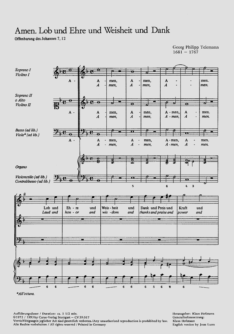 Amen. Lob und Ehre und Weisheit und Dank