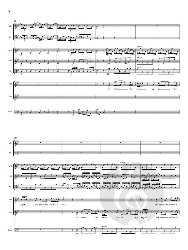 - Besetzung 2 Singstimmen (hoch), Oboe, Fagott, 2 Violinen, Viola und Basso Continuo