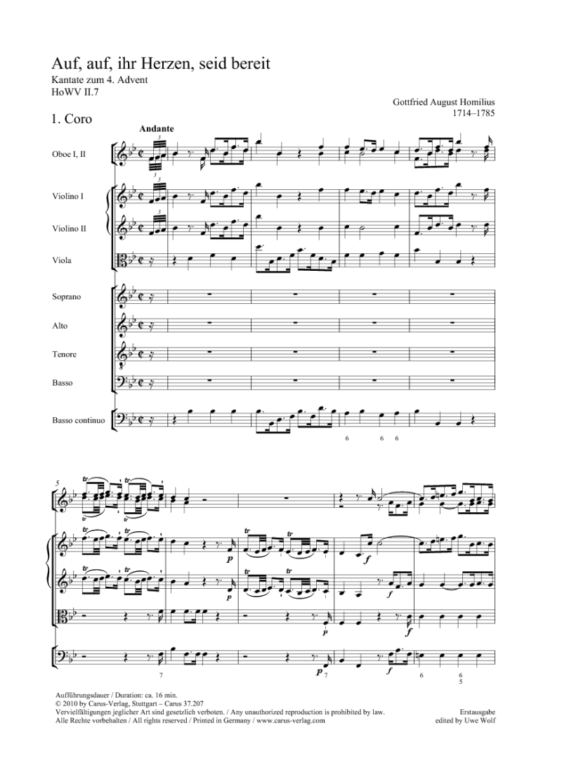 - Besetzung Soli, Gemischter Chor (SATB), 2 Oboen, 2 Violinen, Viola und Basso Continuo