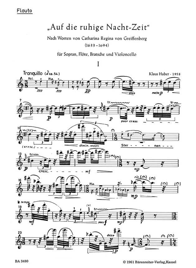 - Besetzung Gesang (hoch), Querflöte, Viola und Cello