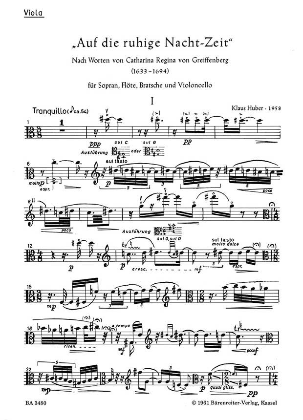 - Besetzung Gesang (hoch), Querflöte, Viola und Cello
