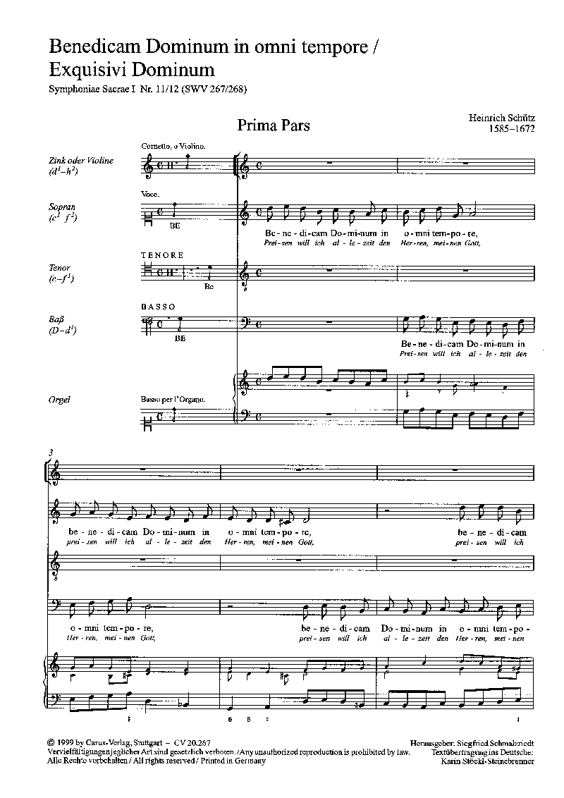 - Opt. Besetzung Zink, 3 Singstimmen und Orgel