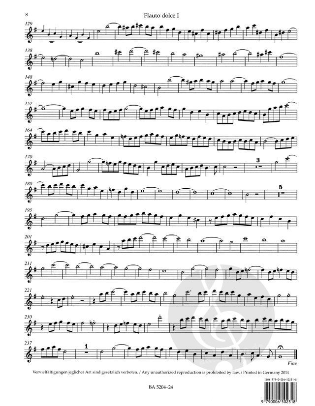 - Besetzung 2 Altblockflöten, Violine, Streicher und Basso Continuo