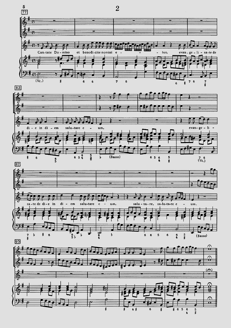 - Besetzung Gesang (hoch), 2 Violinen und Basso Continuo