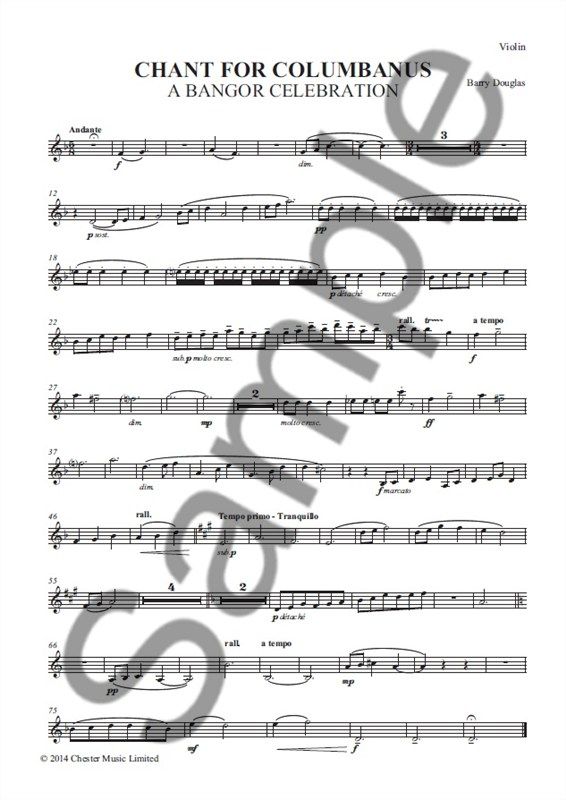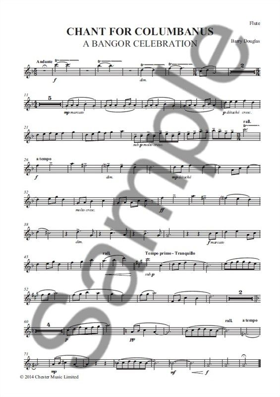 Chant For Columbanus was composed by Irish pianist and conductor Barry Douglas. It is arranged for Quintet: Flute, Violin, Viola, Cello and Piano, and this item features the Score and Parts. Having studied numerous instruments as a child and going on to study under impressive teachers, Douglas went on to win some prestigious prizes for his playing, perhaps most notably winning gold in the International Tchaikovsky Competition. After making a number of acclaimed recordings of his interpretations of other composers' work, Douglas turned his own skilled hand to composition, producing this brilliant work that was commissioned to mark the 400th anniversary of Bangor being granted a town charter.