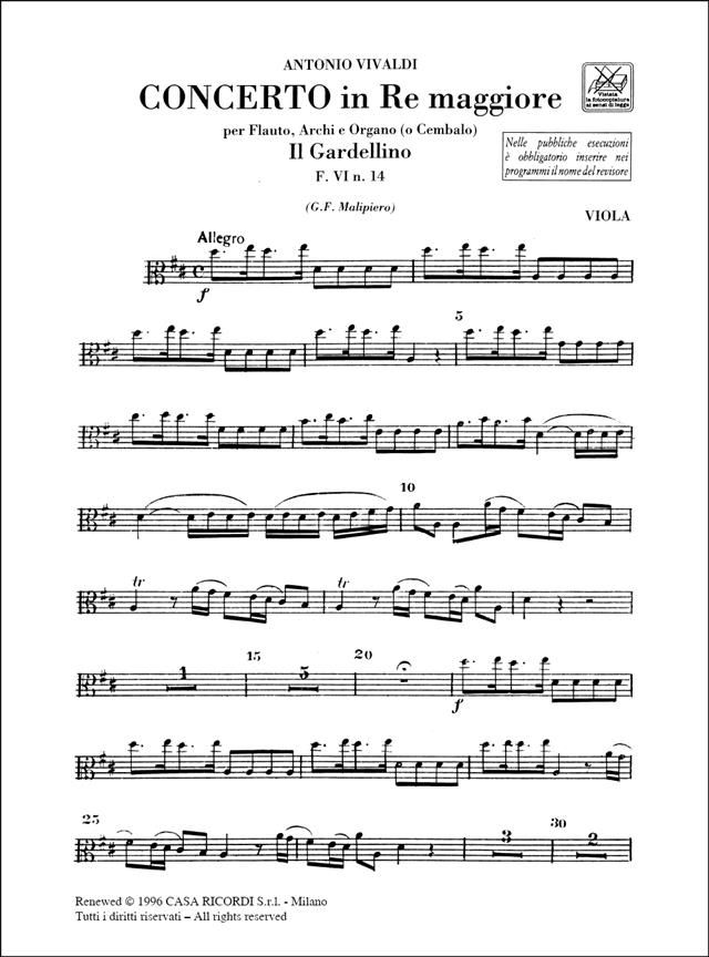per Flauto, Archi e Basso Continuo in Re 'Il Gardellino'