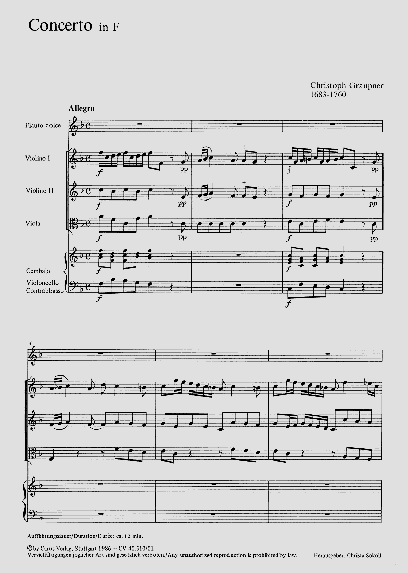 - Besetzung Altblockflöte, 2 Violinen, Viola und Basso Continuo