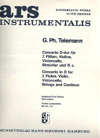für 2 Flöten, Violine, Violoncello, Streicher und B.c.