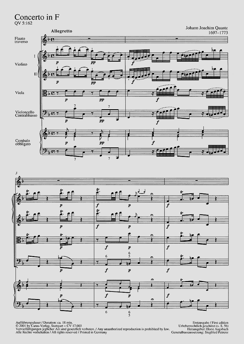 - Besetzung Querflöte, 2 Violinen, Viola, Basso Continuo und Cembalo